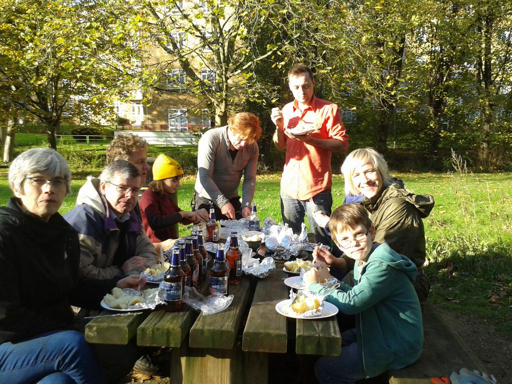On Remembrance Sunday the Friends undertook some work in the wood and meadow. A patch of earth was dug in the meadow and a number of wildflowers planted. Nettles and other weeds which had threatened to strangle the newly planted hedge were taken out and put in the wood to rot down and make a mulch. The willow dome was dismantled and placed against the hedge at the far end of the field. It will, in due course, become a “dead hedge”. In addition the holm oaks in the wood, which are an invasive species, were cut down. The area is now much tidier and, come the spring the wildflower meadow will be a riot of colour and the hedge will also start to mature.